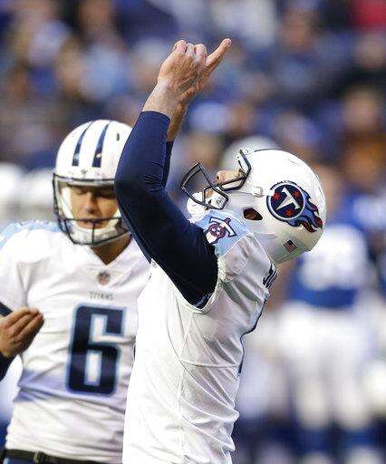 Tennessee Titans kicker Ryan Succop reacts after kicking a 29-yard field goal during the first half of an NFL football game against the Indianapolis Colts, Sunday, Nov. 26, 2017, in Indianapolis. (AP Photo/AJ Mast) The Associated Press