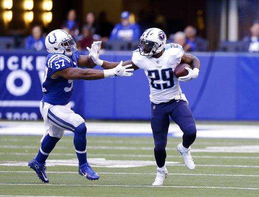 Tennessee Titans' DeMarco Murray (29) runs against Indianapolis Colts' Jon Bostic (57) during the second half of an NFL football game, Sunday, Nov. 26, 2017, in Indianapolis. Tennessee won 20-16. (AP Photo/Michael Conroy) The Associated Press