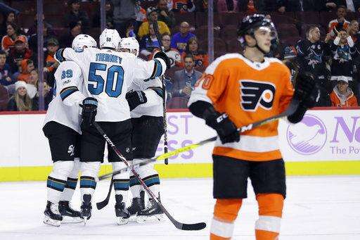 NOTES: Sharks F Joonas Donskoi left in the second period with an injury. . Sharks C Melker Karlsson (upper body) returned after a four-game absence and played on the fourth line. . After the Flyers hit the post four times in the second period Monday in Pittsburgh, Valtteri Filppula and Shayne Gostisbehere each hit the post less than a minute apart in the first period. . Flyers D Radko Gudas served the sixth game of his 10-game suspension for slashing.