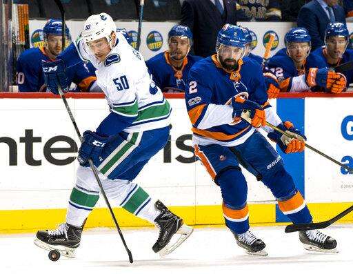 NOTES: Daniel Sedin did not record a point and remains stuck on 998 for his career. His brother Henrik is the only player in Canucks history to record 1,000 points with the team. ... The game was the first against the Islanders for Travis Green as coach of the Canucks. Green, 46, played 388 games over six seasons for New York, recording 92 goals, 145 assists and 237 points. ... Anthony Beauvillier replaced Casey Cizikas as the center on New York's fourth line. Cizikas suffered a lower body injury in the Islanders' 2-1 win over the Senators Saturday night in Ottawa. The Islanders scratched defensemen Ryan Pulock and Dennis Seidenberg.