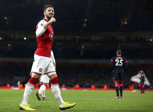 Giroud, who came on at halftime after Lacazette had a groin injury, grabbed his second goal three minutes from the end after Kolasinac's drove into the box.
