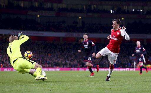 Another assist followed a minute later when Ozil was freed down the right flank and picked out Sanchez, who finished high into the net. Ozil wasn't finished. He lifted the ball over Huddersfield 'keeper Jonas Lossl after being slipped through on goal by Ramsey.