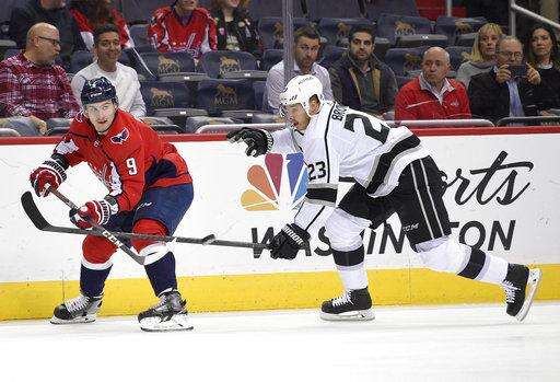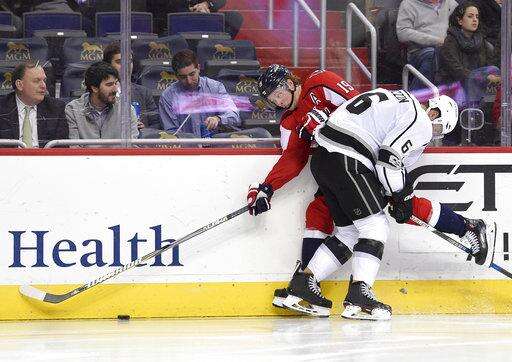 NOTES: Tyler Toffoli had an empty netter with 4 seconds left. ... Quick improved to 8-2-0 in his career against Washington. ... Los Angeles defenseman Kurtis MacDermid picked up his first two assists in his 18th NHL game. ... The Kings' league-best penalty kill was a perfect 2 for 2. ... Capitals D Dmitry Orlov picked up his 100th career point as he assisted on Kuznetsov's first goal. ... Capitals D Christian Djoos returned after missing six games with a suspected concussion. He replaced Taylor Chorney. ... Washington put F Nathan Walker on waivers with the intent of the Aussie getting more playing time in the American Hockey League. ... Kings F Torrey Mitchell missed his third consecutive game with immigration/visa issues since being acquired from Montreal on Thanksgiving.