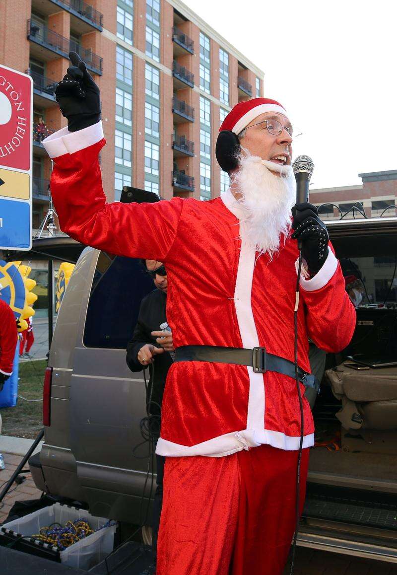 Arlington Heights Mayor Thomas Hayes greets runners before the 10th annual Rotary Santa run in downtown Arlington Heights Saturday. Steve Lundy/slundy@dailyherald.com