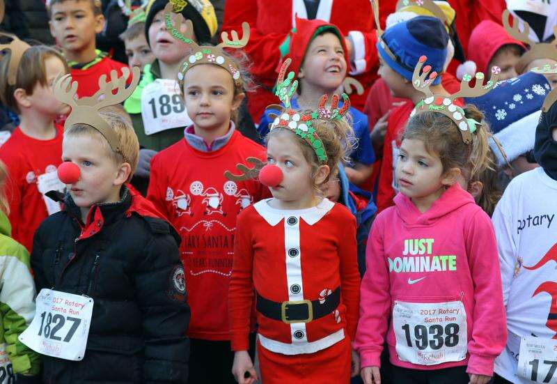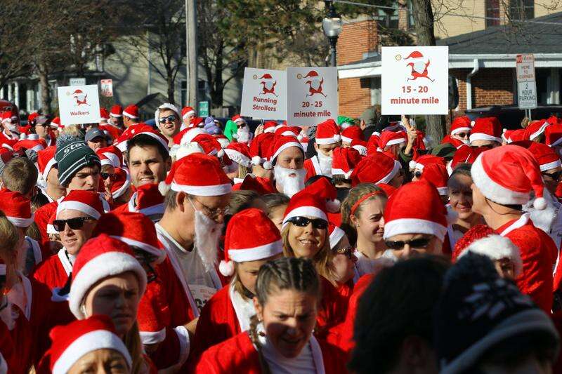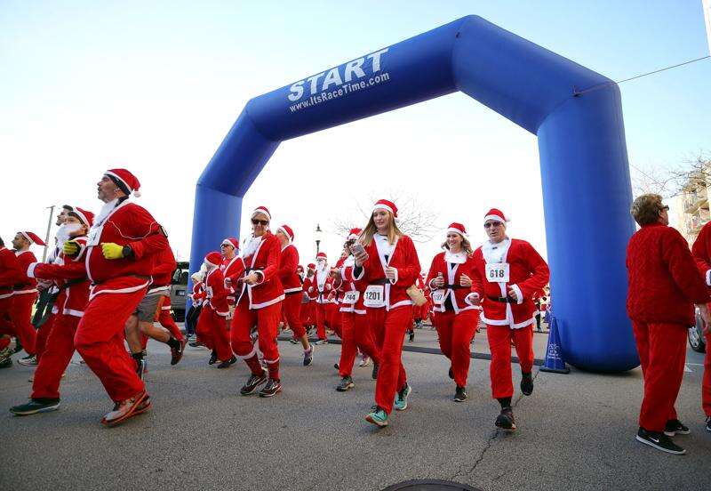 Thousands of runners donning Santa costumes dashed through the streets of Arlington Heights Saturday morning for the annual Rotary Santa Run, which celebrated “10 Years and Running!”