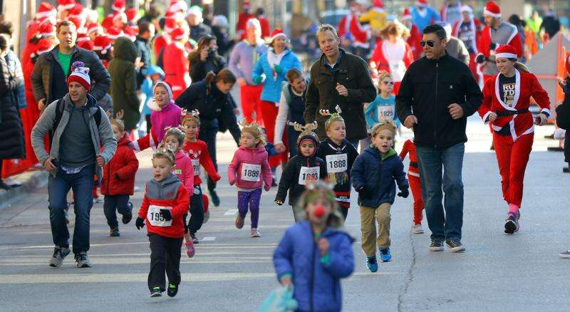 Runners take off from the starting line during the 10th annual Rotary Santa run in downtown Arlington Heights Saturday. Steve Lundy/slundy@dailyherald.com