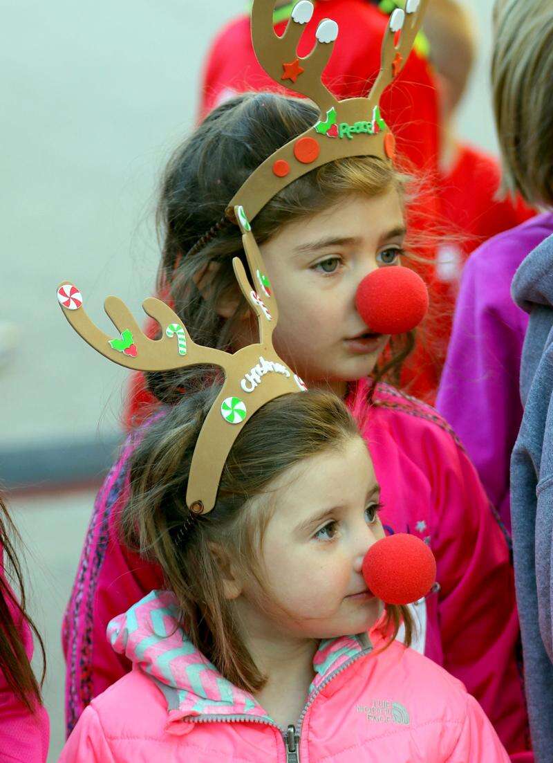 3-year-old Gabriella Irk, front, and her sister Analyce, 5, get ready for the fourt-block Reindeer Run during the 10th annual Rotary Santa run in downtown Arlington Heights Saturday. Steve Lundy/slundy@dailyherald.com
