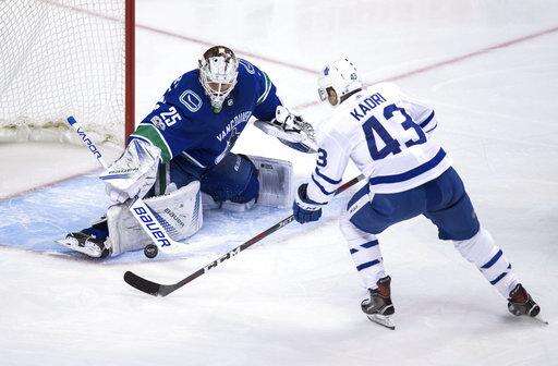 William Nylander blasted an effort on the power play that Markstrom got a piece of before the puck hit the crossbar and stayed out before the Vancouver goalie also thwarted Nazem Kadri moments later from the slot.