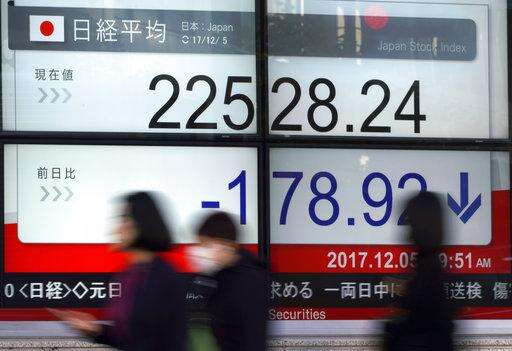 KEEPING SCORE: Tokyo's Nikkei 225 index slipped 0.3 percent to 22,635.22 and Hong Kong's Hang Seng index dropped 0.3 percent to 29,051.63. The Kospi in South Korea gained 0.2 percent to 2,506.55 while the Shanghai Composite index added 0.1 percent to 3,311.59. Australia's S&P ASX 200 fell 0.2 percent to 5,971.30. Shares in Southeast Asia were mostly higher. Taiwan declined.
