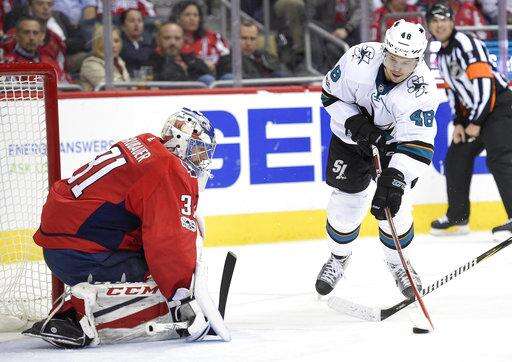 NOTES: Connolly scored in back-to-back games since returning from being a healthy scratch for the previous two. ... Sharks coach Peter DeBoer said D Paul Martin is close to returning from an undisclosed injury that has kept him out since Oct. 12. ... Capitals F Travis Boyd made his NHL debut, replacing Chandler Stephenson, who's day-to-day with an upper-body injury. ... F Andre Burakovsky rejoined the Capitals for their morning skate as he works back from October surgery to repair his broken left thumb. He hopes to return within the next week.