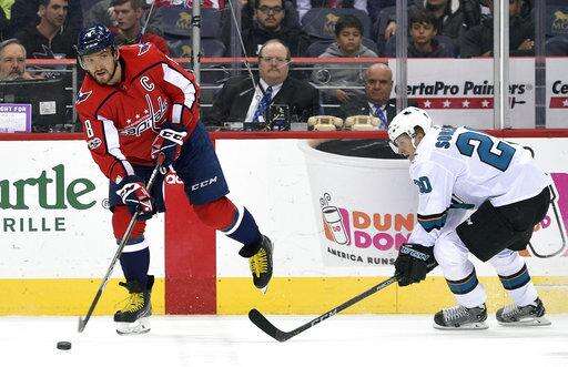 The Capitals beat the Sharks for the fourth time in 18 meetings since Ovechkin entered the league in 2005-06. It's just Washington's second regulation win against San Jose in that time and first since Oct. 15, 2009. It ended a four-game skid in the series.