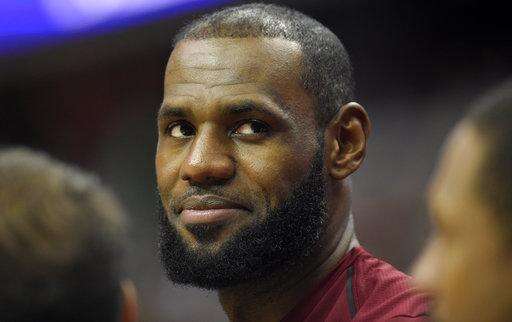 FILE - In this Oct. 8, 2017, file photo, Cleveland Cavaliers forward LeBron James looks on from the bench during the first half of an preseason NBA basketball game against the Washington Wizards, in Washington. On Tuesday, Dec. 5, 2017, Twitter released its top trending people and topics for 2017. James was one of the most retweeted people. (AP Photo/Nick Wass, File) The Associated Press