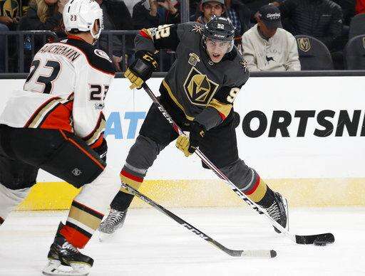 Vegas Golden Knights right wing Reilly Smith attempts a shot against the Anaheim Ducks during the first period of an NHL hockey game Tuesday, Dec. 5, 2017, in Las Vegas. (AP Photo/John Locher) The Associated Press