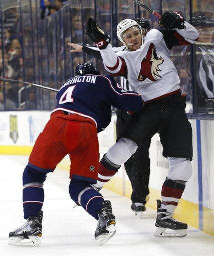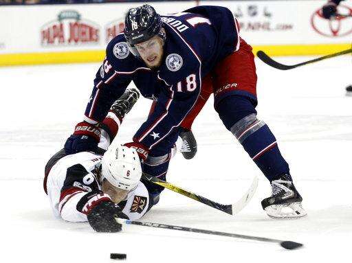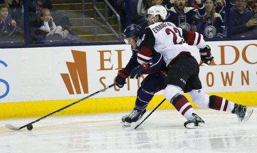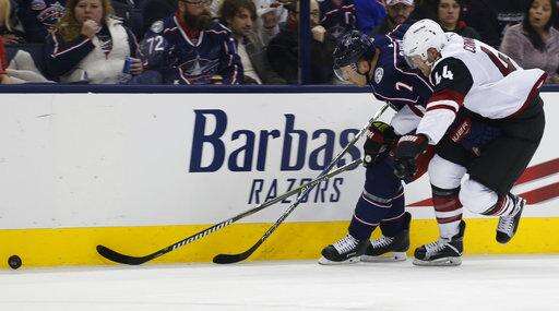 NOTES: The Blue Jackets' league-worst power play didn't get any better. They were 0 for 2 with the man advantage. ... Arizona D Jason Demers left the game early in the third period after he took a puck in the face. ... Columbus F Cam Atkinson, who signed a seven-year, $41 million contract extension last month, was a healthy scratch. He has two goal and two assists in 14 games since returning from an injury Nov. 7. He's been held without a point in the last six games. ... F Sonny Milano was recalled from Cleveland of the American Hockey League and started on the third line but was sent back after the game. ... Blue Jackets D Ryan Murray missed his sixth game with an upper-body injury. Scott Harrington again skated in his place.