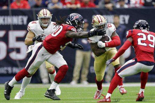 Houston quarterback Tom Savage and offensive tackle Kendall Lamm sustained concussions in the first quarter. Six Texans players have suffered concussions in the last two games combined. ... 49ers rookie receiver Victor Bolden injured his ankle in the second quarter and didn't return. ... San Francisco cornerback Ahkello Witherspoon injured his knee in the fourth quarter. ... 49ers cornerback Dontae Johnson injured his knee, and Shanahan said he would know more about the injury after he had an MRI on Monday.