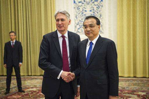 BEIJING (AP) - Britain's finance minister told the Chinese premier there are "many opportunities" for closer commercial ties as he started a visit Friday aimed at developing trade as the United Kingdom prepares to leave the European Union.