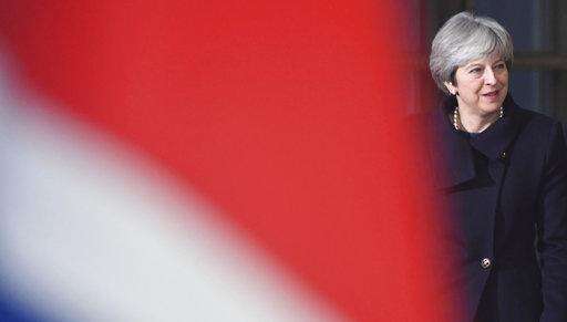 British Prime Minister Theresa May walks by the British flag during an EU summit at the Europa building in Brussels on Thursday, Dec. 14, 2017. European Union leaders are gathered in Brussels Thursday and are set to move Brexit talks into a new phase as pressure mounts on Prime Minister Theresa May over her plans to take Britain out of the 28-nation bloc. (AP Photo/Geert Vanden Wijngaert)