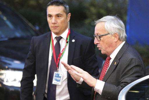 European Commission President Jean-Claude Juncker arrives for an EU summit at the EU Council building in Brussels on Friday, Dec. 15, 2017. European union leaders meet Friday to launch Brexit talks into a new phase and to discuss the euro and banking union. (AP Photo/Olivier Matthys)