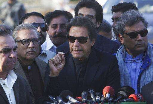 Pakistani opposition leader Imran Khan speaks to reporters in Karachi, Pakistan, Friday, Dec. 15, 2017. Pakistan's top court has rejected a petition seeking the disqualification of Khan from office for allegedly concealing foreign assets. (AP Photo/Fareed Khan) The Associated Press