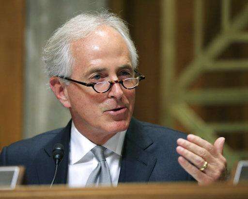 FILE - In this Oct. 30, 2017 photo, Senate Foreign Relations Committee Chairman Sen. Bob Corker, R-Tenn., speaks during a Senate Foreign Relations Committee hearing on "The Authorizations for the Use of Military Force: Administration Perspective" on Capitol Hill in Washington. Democrat James Mackler says he's dropping out of the U.S. Senate race in Tennessee to replace Corker, a move that appears to clear the path to the Democratic nomination for former Gov. Phil Bredesen. (AP Photo/Manuel Balce Ceneta, File) The Associated Press