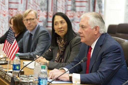 U.S. Secretary of State Rex Tillerson speaks during a meeting with Japanese Foreign Minister Taro Kono before a high level Security Council meeting on the situation in North Korea, Friday, Dec. 15, 2017 at United Nations headquarters. (AP Photo/Mary Altaffer) The Associated Press