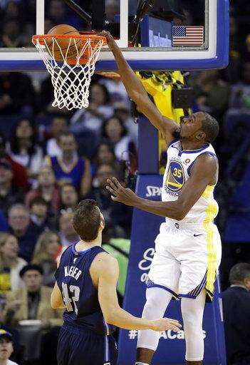 Durant also blocked two shots in his fourth 30-point game of the season and third in the last four. Golden State won its 10th in a row against the Mavericks at Oracle Arena and eighth consecutive in the series overall.