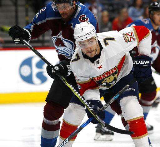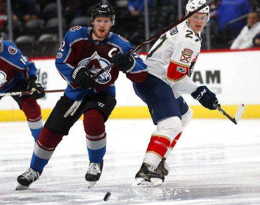 NOTES: The Panthers have not allowed a power-play goal in four straight games. ... Avalanche forward Alexander Kerfoot was out of the lineup for the second straight game. Kerfoot was injured when a shot by teammate Erik Johnson hit him in the foot against Pittsburgh on Monday. ... Florida C Denis Malgin was scratched. He left Tuesday's overtime loss in Chicago with an upper-body injury and didn't return. ... Colorado has allowed six short-handed goals this season, and the Panthers have scored six on the penalty kill.