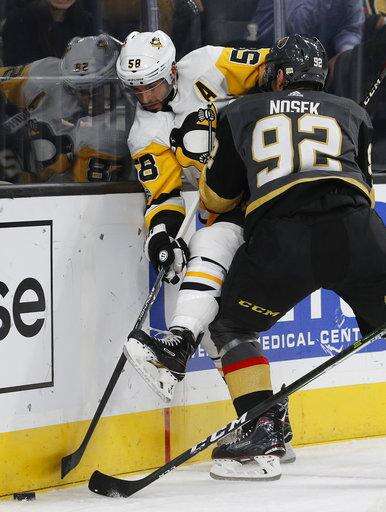 The Golden Knights became the fastest team to 20 wins in NHL history. ... Vegas D Deryk Engelland's next game will be the 500th of his career. ... Engelland, Fleury, James Neal, and David Perron have all played for the Penguins during their careers. ... Crosby is five goals away from notching the 400th in his career. ... Crosby has at least one point in 10 of his last 14 games, with eight goals and 11 assists. ... Thursday was the first road game of a three-game trip for Pittsburgh, and first since Dec. 1. ... The Penguins dropped to 4-8-1 on the highway this season.