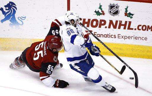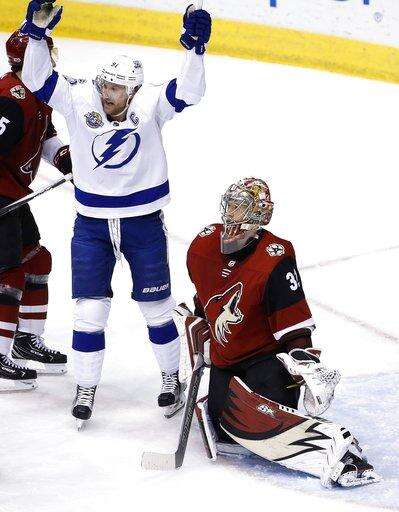 NOTES: Lightning F Ryan Callahan left in the third period with an upper-body injury. "This one might be longer than day-to-day," Cooper said. ... Arizona acquired F Ryan Kujawinski from New Jersey for F Michael Latta. ...Tennessee Titans players attended the game. Coming off a loss to Arizona on Sunday, the NFL team is practicing at Arizona State in preparation of its game Sunday at San Francisco.