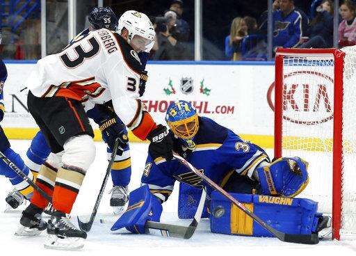 NOTES: Perry is listed as week to week. ... Allen has started the Blues' last seven games. ... St. Louis D Alex Pietrangelo missed his third consecutive game with a lower-body injury. ... The Ducks will play 11 of their next 14 games on the road.