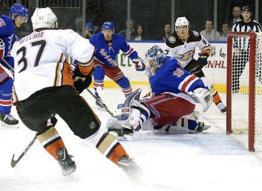 NOTES: Holden got his 100th career point on Carey's first goal. ... Rangers captain Ryan McDonagh skated in his 497th NHL game. ... New York scratched D Steven Kampfer and C Boo Nieves. ... Ducks F Andrew Cogliano is the NHL's active leader in consecutive games played (821). ... Anaheim scratched D Korbinian Holzer and C Dennis Rasmussen. ... The Rangers have earned at least one point in 13 of their last 14 home games, dating to Oct. 26 (12-1-1 record over the span).