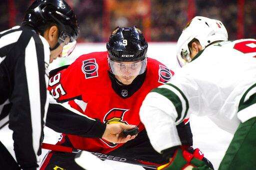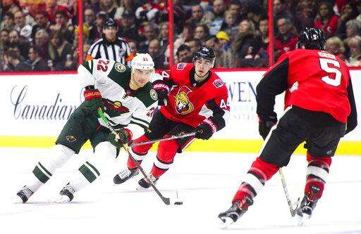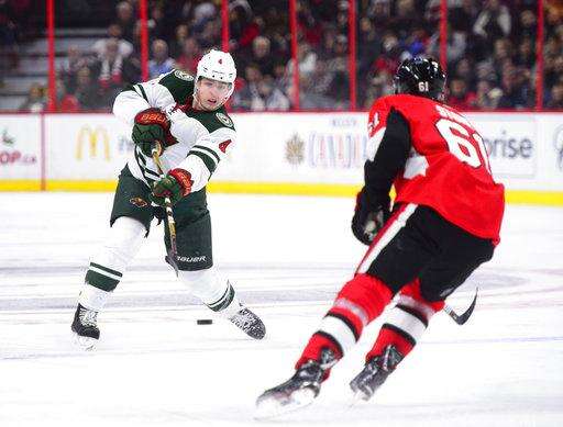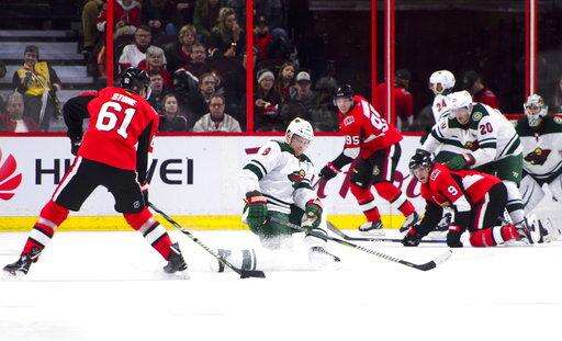 NOTES: Gabriel Dumont and Ben Harpur were scratches for Ottawa while Gustav Olofsson, Zack Mitchell and Devan Dubnyk were scratches for the Wild. ... Senators F Alex Burrows is one assist shy of 200 for his career. ... The Wild had killed 19 straight penalties before Karlsson scored on the Senators' first power-play attempt.
