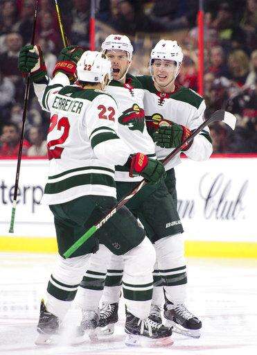 Minnesota had lost two straight and trailed 3-1 in the second period after giving up two goals to Erik Karlsson and another to Jean-Gabriel Pageau. Chris Stewart and Mikko Koivu scored to tie it before the second intermission, and then Prosser, Jonas Brodin and Staal scored for the Wild in the final period.