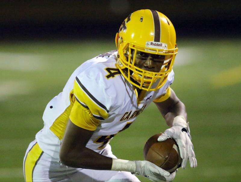 Carmel Catholic's Shaneal Greene, here running after a catch against Notre Dame, has signed with Indiana State.