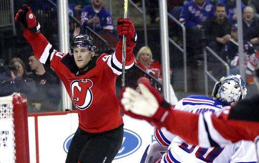 The goal came a little more than a minute after an apparent tying goal by Nico Hischier was waved off because of a cross-checking penalty on Palmieri in front of the Rangers net.