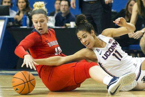 TORONTO (AP) - Katie-Lou Samuelson scored a season-high 33 points, Kia Nurse had 24 and No. 1 UConn posted its biggest victory of the season, routing Duquesne 104-52 on Friday.