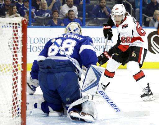Ottawa took its third lead six minutes into the third period on a power-play goal by Derick Brassard. Vladislav Namestnikov answered for Tampa Bay about five minutes later.