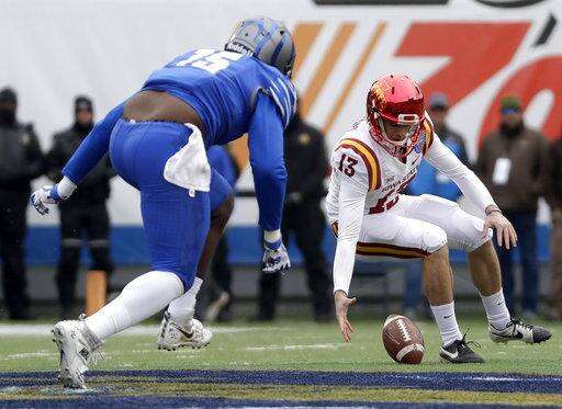 Memphis (10-3) drove to the Iowa State 40 on its next possession but lost the ball on downs when Riley Ferguson overthrew Phil Mayhue on fourth-and-10 with 1:52 remaining. Iowa State ran out the clock from there.