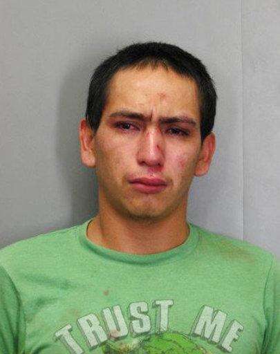 The newspaper says Wilmer Lara Garcia has been charged with auto theft and two counts of forgery. Police say he was wearing the shirt that read "Trust Me."
