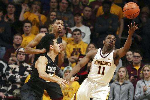 Amir Coffey, who had 12 points and five assists for the Gophers (12-3), started the second half with a corner 3-pointer to push their lead back to double digits. The Crimson (5-8) didn't fade despite their perimeter-shooting persistence, finally attempting their first free throw with 12:11 remaining in the game.