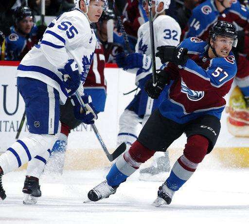 MacKinnon gave Colorado a 1-0 lead with his 16th goal midway through the first period. Toronto tied it when Martin's centering pass from down low bounced of Blake Comeau's skate and in at 14:55.