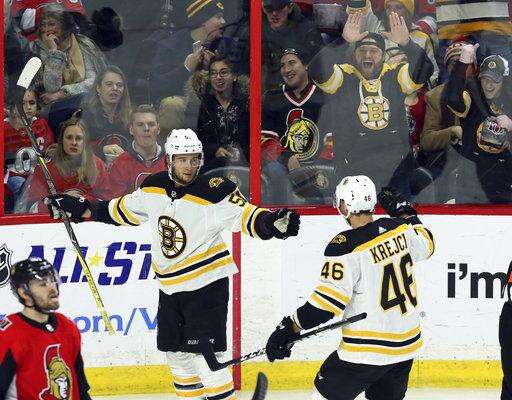 NOTES: Ottawa D Fredrik Claesson served the second game of his two-game suspension. ... Boston LW Anders Bjork, C Frank Vatrano and D Paul Postma were healthy scratches.