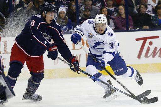 NOTES: Kucherov has 16 points in the last 10 games. ... Columbus F Boone Jenner played in his 300th career NHL game. ... Tampa Bay D Anton Stralman returned after missing two games with a lower body injury. ... Lightning G Louis Domingue was recalled from Syracuse (AHL) after Peter Budaj left Friday night's loss to Philadelphia with a leg injury after a collision. ... D Slater Koekkoek was scratched by Tampa Bay. ... D Dean Kukan was a scratch for Columbus.