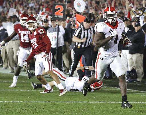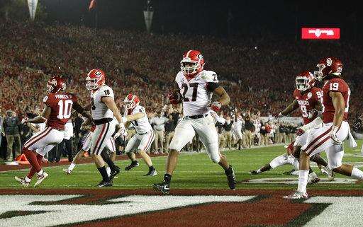 Michel raced 27 yards for a touchdown in the second overtime to give No. 3 Georgia a 54-48 victory against No. 2 Oklahoma in the College Football Playoff semifinal Monday night.