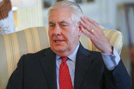 Secretary of State Rex Tillerson gestures during a interview with the Associated Press at the State Department in Washington, Friday, Jan. 5, 2018. Tillerson says the Trump administration is working with key lawmakers on a legislative fix that could clear the path for President Donald Trump to remain in the Iran nuclear deal. (AP Photo/Pablo Martinez Monsivais) The Associated Press