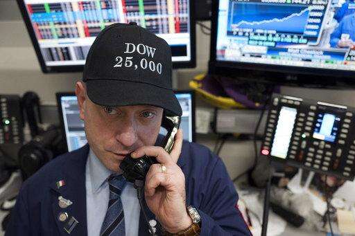 NEW YORK (AP) - The Dow Jones industrial average burst through the 25,000 point mark Thursday, just five weeks after its first close above 24,000.