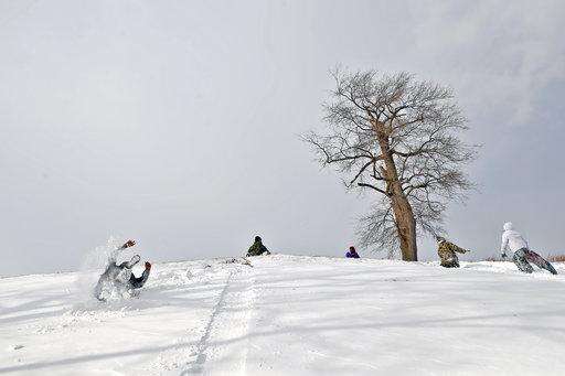 Sledders take turns sliding down a hill and walking back up on Fort Monroe Thursday, Jan. 4, 2018. (Jonathon Gruenke/The Daily Press via AP) The Associated Press