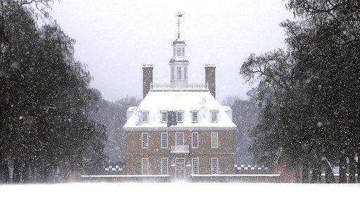 Snow falls over the Governor's Palace in Colonial Williamsburg, Va., Thursday, Jan. 4, 2018. (Alexa Welch Edlund /Richmond Times-Dispatch via AP) The Associated Press
