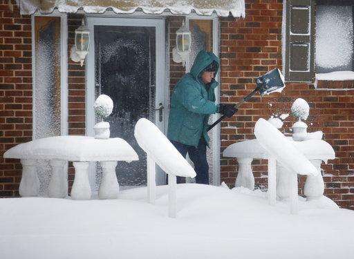 A man shovels his walkway and stairs after heavy snowfall Thursday, Jan. 4, 2018, in Virginia Beach, Va. (Stephen M. Katz/The Virginian-Pilot via AP) The Associated Press