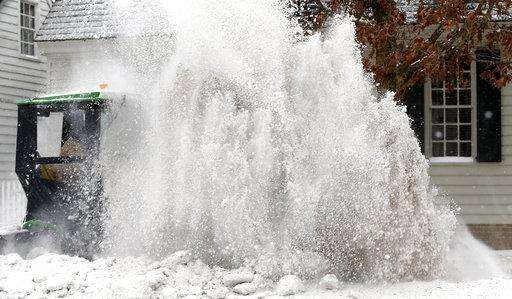 Authorities also reported two deaths: A girl was hit by a pickup truck while sledding in the Richmond suburb of Chesterfield County and a 75-year-old man was struck by a snow plow in the Hampton area while clearing snow from a parking lot. Police said both died in hospitals.